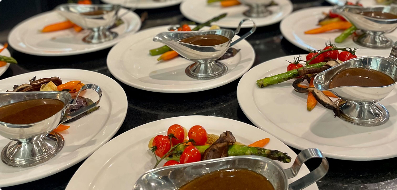 De l’entrée au dessert, la cuisine est exécutée avec précision, la présentation est soignée et le service est fluide et professionnel. Notre équipe assure la coordination complète du service en salle, pour que chaque moment se déroule avec justesse et élégance, du premier service jusqu’au dernier.